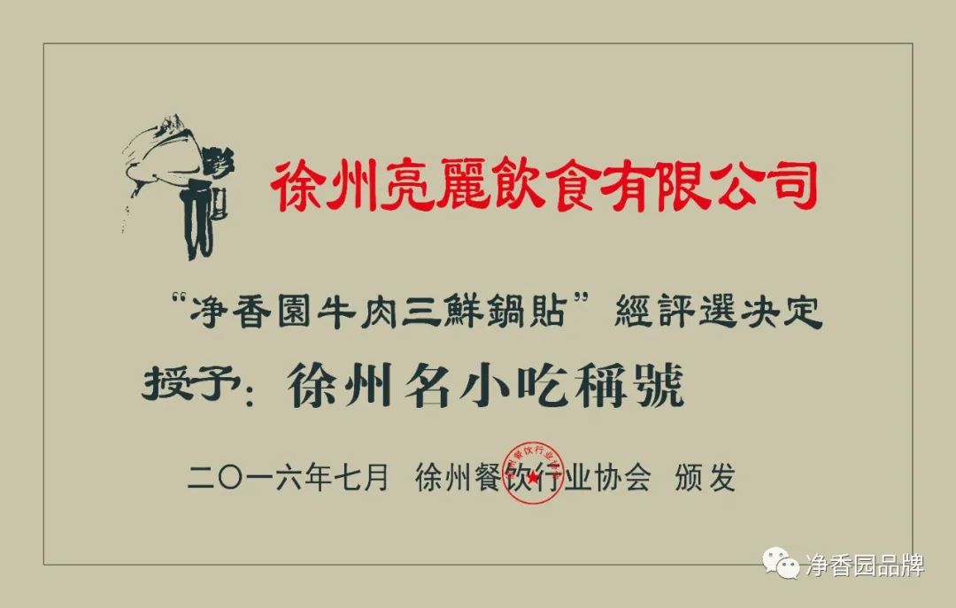 凈香園嚴格把控食品安全,提升口味品質,先后獲得以下榮譽:“星級誠信單位”、“徐州名小吃稱號”、“徐州市最佳餐飲連鎖品牌”、“徐州十佳小吃”、“江蘇名小吃””等榮譽稱號。